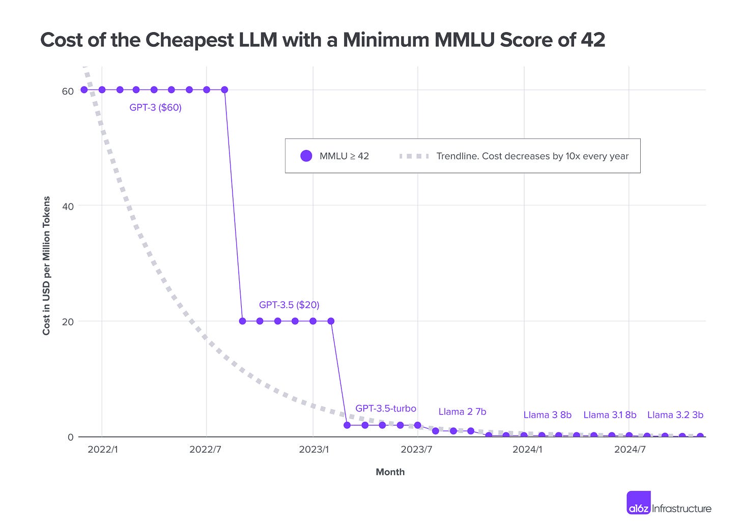 But here’s what’s enabling a truly different, more integrated approach: the absolutely staggering drop in LLM inference costs. Looking at the trends, the cost for a consistent level of model intelligence seems to have plummeted by something like 1000x in just three years – maybe from around $60 per million tokens in 2022 down to $0.06 or less today (as of early 2025). This isn't just an incremental improvement; it's a paradigm shift. Applications and techniques that were completely impractical from a cost perspective just a couple of years ago are suddenly unlocked and economically viable.
